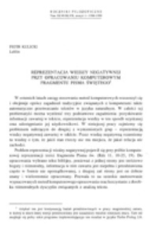 | Kulicki, Piotr - Reprezentacja wiedzy negatywnej przy opracowaniu komputerowym fragmentu Pisma Świętego. | Dec 19, 2018 |