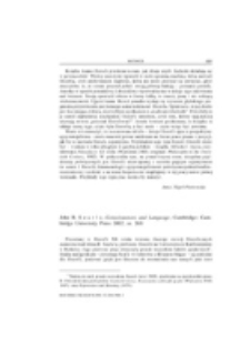 Title: Recenzja : John R. Searle, Consciousness and Language, Cambridge: Cambridge University Press 2002, ss. 269.